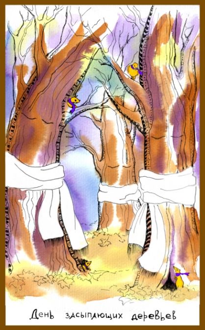 Деревья уже вовсю готовятся к зимнему сну. Снимают летнюю одежду, желтеют листьями и не тянут соки из земли. Нет, они еще не спят. Но - засыпают... Они ведь тоже устали за лето - распуститься цветами, вырасти листьями, созреть плодами - это требует много сил. А еще нужно было успеть поболтать с пчелами, предоставить ветки птицам, дать тень в солнечный день и защиту от дождя - в дождливый...