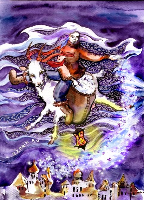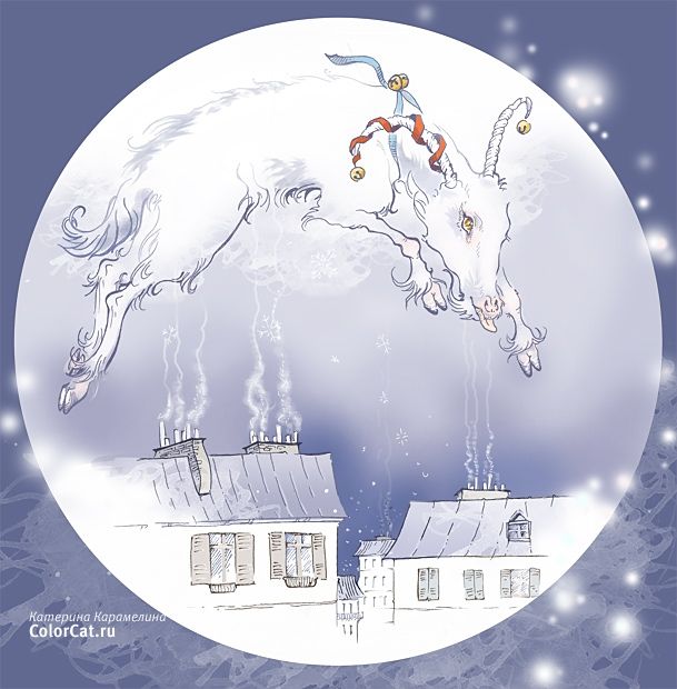 Их называют белыми мухами и мотыльками. Но никто-никто не знает, откуда они берутся. На самом деле - это пух белой козы, прыгающей по облакам. У нее длинный язык и розовый от холода нос. Розовые копытца, рога с бубенцами. Она спрыгивает с низких облаков прямо на крыши, ведь там высота - всего ничего. И носится повсюду, а на землю ложится пух.