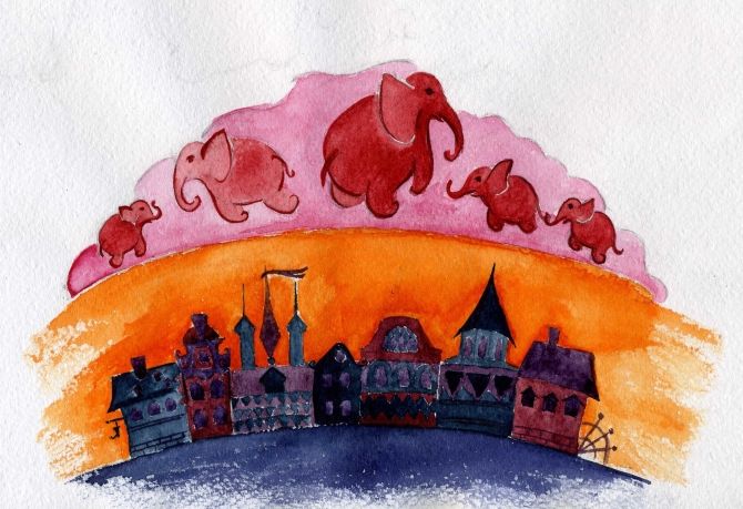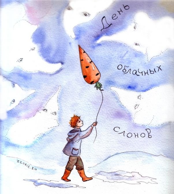 Подними голову в весеннее небо и обрати внимание на облака. Ба, так это же просто чудо какое-то! Целые стада облачных слонов весело путешествуют в голубом просторе, подставляя округлые бока теплым солнечным лучам. Они то бегут бегом на крыльях ветра, то застывают на месте, задумавшись о своем масштабном, слоновьем, то разбредаются по небу небольшими группами, приветливо покачивая хоботами... Они бывают самых разных мастей: молочно-белые, серые, почти черные, нежно-розовые, пурпурные, золотистые - столько оттенков и не снилось обычным земным слонам. Их путь никогда не кончается. Кажется, вот опустело небо, только солнце в лазурной выси. Ан нет, пробирается по краю горизонта одинокий припозднившийся слон, философ и мечтатель. Они все прекрасны, разнообразны, замечательно красивы. Доброго вам пути, слоны и слонята, стада и одинокие путники!